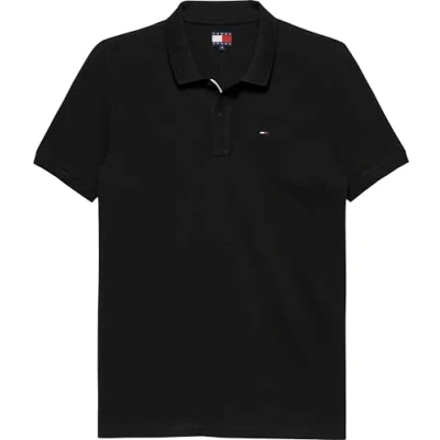 Tommy Jeans Men’s Short Sleeve Placket Slim Fit Polo Shirt, Black (Black), S