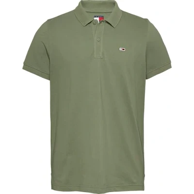 Tommy Jeans Men’s Short Sleeve Placket Slim Fit Polo Shirt, Green (Aruba Green), S