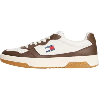 Tommy Jeans Men's TJM Cupsole Leather Ess Em0Em01443 Low Top, White (Ivory/Velvet Brown), 11 UK
