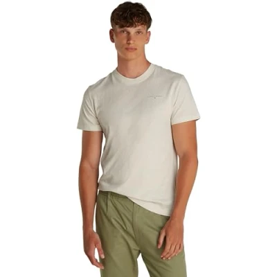 Tommy Jeans Men's TJM Slim Linear Chest Tee Ext Dm0Dm21188 S/S T Shirt, Beige (Oat Marl HTR), S