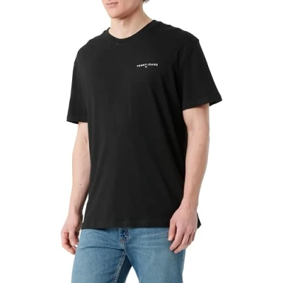 Tommy Jeans Men's TJM Slim Linear Chest Tee Ext Dm0Dm21188 S/S T Shirt, Black (Black), XXL