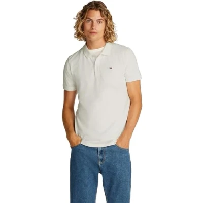 Tommy Jeans Men's TJM Slim Placket Polo Ext Dm0Dm18312 S/S, White (Ecru), XS