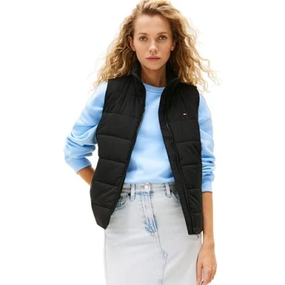 Tommy Jeans Padded VEST Waistcoat, Women's, Size: 10, Black
