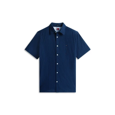 SpartooTommy Jeans TJM REG SEERSUCKER SHIRT EXT men's Short sleeved Shirt in Marine