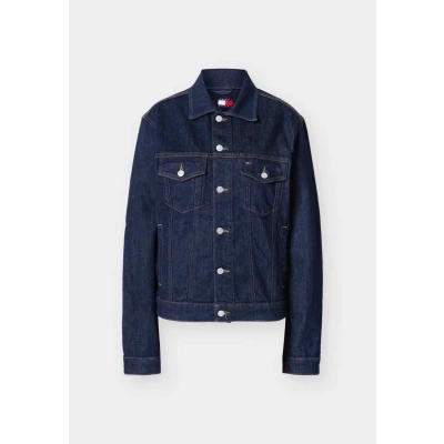This denim trucker jacket exudes vintage vibes, with its contrast topstitching and classic envelope pockets on the chest.Highlights• Stretch cotton denim• Contrast topstitching• Semispread collar• Button closure• Two chest buttoned envelope pockets• Two side welt pockets• Onebutton cuffs• Adjustable waist tabs• Branded metal buttons• Tommy badge on back• Tommy Jeans branding• Tommy flag embroidery on chest pocketshape & fit• Regular fitcomposition & care• 99% cotton, 1% elastane• 14.16oz denim Sale | Upper material: textile/Outer fabric material: 99% cotton, 1% elastane | Sale order at Zalando UK! Size: 42. Color: Denim dark. Pattern: plain.