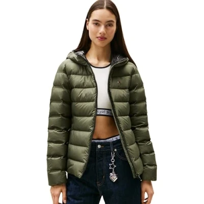 Tommy Jeans SLIM HOOD Down jacket, Women's, Size: 6, Pewter green