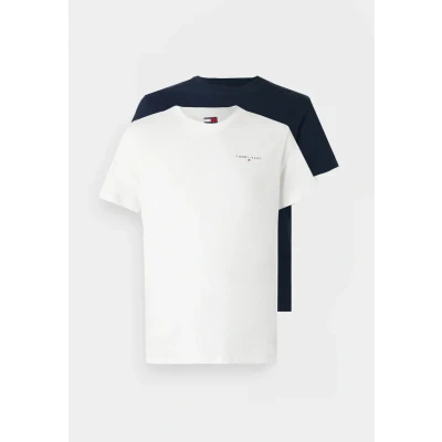 Tommy Jeans SLIM Linear TEE 2 PACK Basic Tshirt, Men's, Size: 42, Ecru/dark night navy