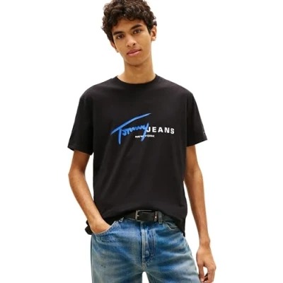 AmazonTommy Jeans graffiti signature logo on chest Tommy Jeans branding Tommy Jeans flag patch on sleeve