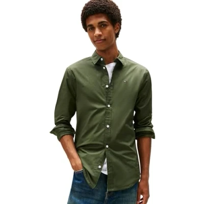 Tommy Jeans TJM ORIGINAL STRETCH Shirt men's Long sleeved in Kaki