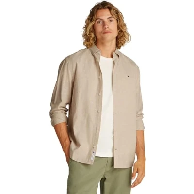 TOMMY JEANS TJM REG Linen Blend LS Shirt EXT L/S Men's, Beige (Relic Tan), L