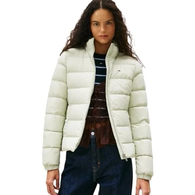 Tommy Jeans Women's Basic Hooded Down Puffer Jacket, Green (Misty Sage), L