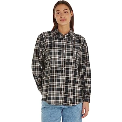 Tommy Jeans Women's Check Overshirt Long Sleeve, Multicolor (Black Check), M