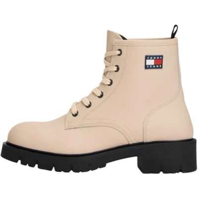 Tommy Jeans Women’s Lace up Leather Ankle Boots, Beige (White Clay), 4