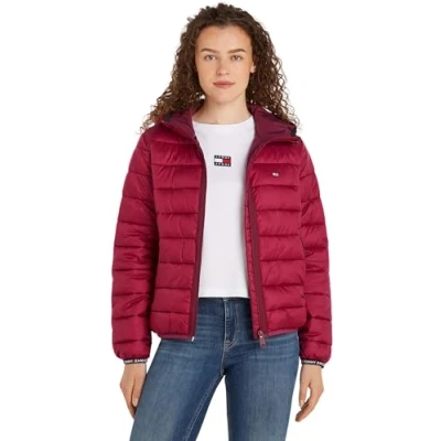 Tommy Jeans Women's Quilted Tape Hood Jacket, Red (Valley Grape), 5XL
