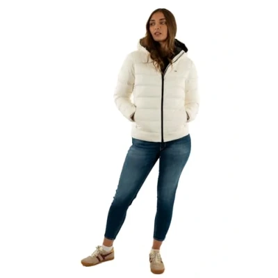 Tommy Jeans Women’s Slim Puffer Jacket with Hood, White (Ecru), 2XL