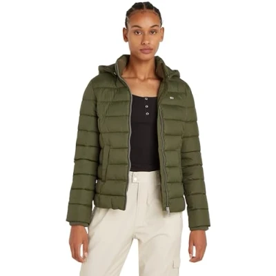 Tommy Jeans Women's Tjw Basic Hooded Jacket Dw0Dw18311 Puffer, Fatigue Green, XXS