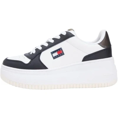 Tommy Jeans Women's Tjw Basket Flatform EN0EN02981 Low Top, White (Ecru/Black), 7.5 UK