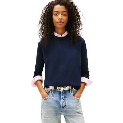 Tommy Jeans Women's TJW Essential Crew Sweater EXT DW0DW20159 Pullover Sweater, Blue (Dark Night Navy), L