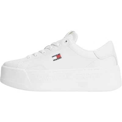 Tommy Jeans Women's Tjw Script Cupsole Flatform EN0EN02961 Low Top, White (Ecru), 7