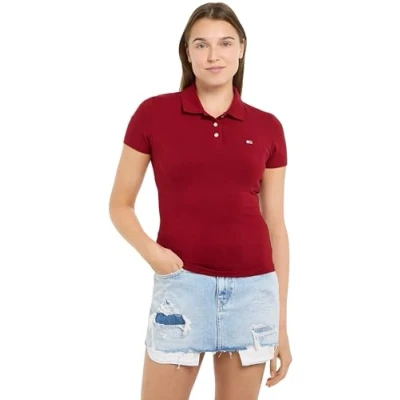 Tommy Jeans Women's Tjw Slim Essential Polo Ss S/S Polo, Red Carpet, XL