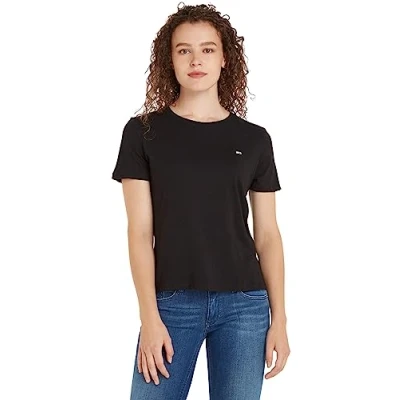 Tommy Jeans Women TJW Soft Short Sleeve T Shirt Crew Neck, Black (Black), XS