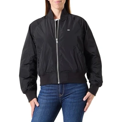 Tommy Jeans Women’s Essential Water Repellent Bomber Jacket, Black (Black), L