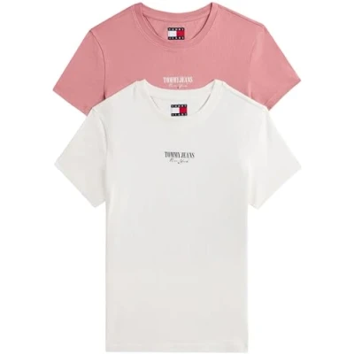 Tommy Jeans Women's Tjw 2Pack Essential Logo 2 Tee Dw0Dw21746 S/S T Shirt, Multi (Ecru/Black), XL