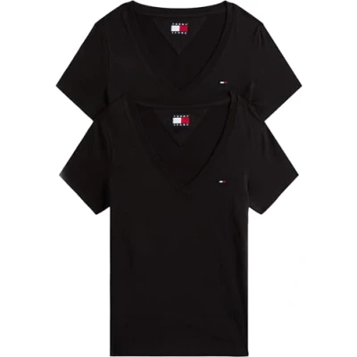 Tommy Jeans Womens Tjw 2pack V Neck Tee Dw0dw21367 S/S T Shirt, Multi (Black/Black), M UK