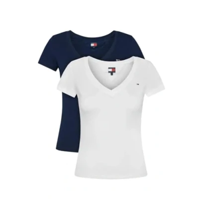 Tommy Jeans Womens Tjw 2pack V Neck Tee Dw0dw21367 S/S T Shirt, Multi (Ecru/Dark Night Navy), XXS UK