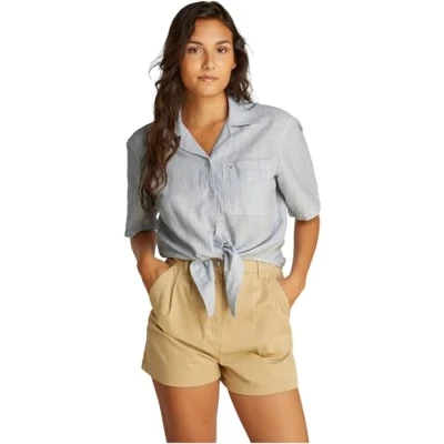 ICONIC & TIMELESS: This original Tommy Jeans shirt boasts a cropped cut and a semi-spread collar. Featuring a simple and effortless design, this tie-front shirt is a classic piece that belongs in every wardrobe. COMFORT & DETAILS: Crafted from a premium fabric, this relaxed fit shirt feels pleasant against the skin all day long. The Tommy Jeans branding on the chest pocket adds that little something extra. CLASSIC ALL-ROUNDER: Having this shirt in your wardrobe gives you a top that is easy to combine and raises the tone of any outfit. The perfect complement to casual denims for everyday wear. MATERIAL & CARE: The shirt is made from 75% Better Cotton Initiative cotton and 25% linen. It is machine washable and suitable for the tumble dryer. NEW TAKE ON STREETWEAR: Tommy Jeans is taking inspiration from hip hop icons of the 90s in order to bring popular classics from that era into the next generation. The focus is on quality and cool designs with plenty of denim.