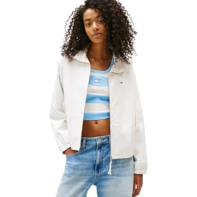 ICONIC & TIMELESS: This original Tommy Jeans jacket with two waist pockets comes in a simple design. Its warm fabric composition makes it perfect for the transitional seasons. OPTIMAL FIT: This versatile windbreaker comes in a minimalist design that’ll keep you warm in any outfit. This timeless jacket has a stand collar and protects you from the wind. FOR EVERY OCCASION: This cool women's jacket is a versatile pick. Blending functionality and comfort, it’s great for both everyday errands and evening events. MATERIAL & CARE: The jacket is made from 100% cotton. It is machine washable and suitable for the tumble dryer. NEW TAKE ON STREETWEAR: Tommy Jeans is taking inspiration from hip hop icons of the 90s in order to bring popular classics from that era into the next generation. The focus is on quality and cool designs with plenty of denim.