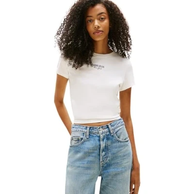 SIMPLE & CASUAL: Crafted from comfortable cotton, this basic top is perfect for your laidback looks. The Tommy Jeans logo on the chest completes the outfit. OPTIMAL FIT: This minimalist short sleeve top is crafted from soft cotton for a figure-hugging fit. FOR EVERY OCCASION: This top boasts a timeless design, as well as a comfortable fabric that feels pleasant against the skin. Whether teamed with jeans, shorts or an elegant pair of trousers, it will go with all your everyday outfits. MATERIAL & CARE: The T-shirt is made from 70% regenerative cotton and 30% viscose. It is machine washable. NEW TAKE ON STREETWEAR: Tommy Jeans is taking inspiration from hip hop icons of the 90s in order to bring popular classics from that era into the next generation. The focus is on quality and cool designs with plenty of denim.