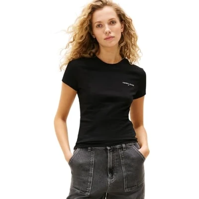 Tommy Jeans Women's Tjw Slim Linear Ss Tee Ext Dw0Dw21164 S/S T Shirt, Black (Black), XS