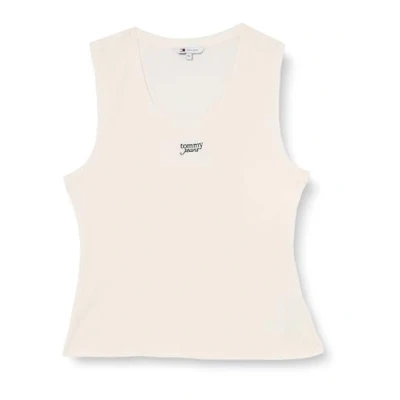 Tommy Jeans Women's Tjw Slim Script Rib Tank Top Dw0Dw21369 Other T Shirts, White (Ancient White), XS
