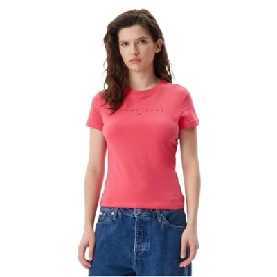 TOMMY JEANS Womens Tjw Slim Tonal Linear Tee Ext Dw0dw20315 S/S T Shirt, Red (Amour), L UK