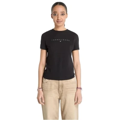 TOMMY JEANS Womens Tjw Slim Tonal Linear Tee Ext Dw0dw20315 S/S T Shirt, Black (Black), XL UK