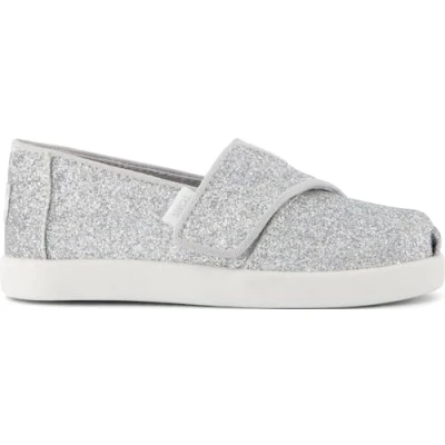 TOMS Girls Alpargata Classic Slip On Espadrille, Silver Iridescent Glimmer, 5 UK Child