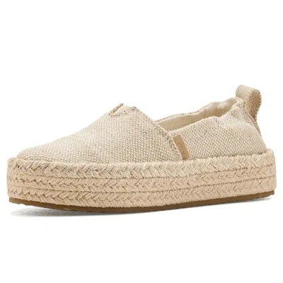 TOMS Valencia Platform, Champagne Glimmer Slub Canvas, 3 UK