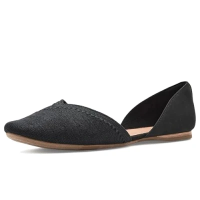 TOMS Women's Gemma D'Orsay Ballet Flat, Black Heritage Canvas/Leather/Embroidery, 7.5 UK