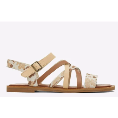 TOMS Women's Sephina Flat Sandal, Beige Abstract Cow Print, 6 UK