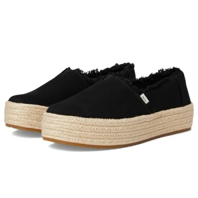 TOMS Women's Valencia Wedge, Black Wide Width Canvas/Fray, 6 UK
