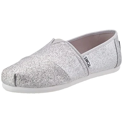 TOMS Alpargata Classic Slip On Espadrille, Silver Iridescent Glimmer, 3 UK