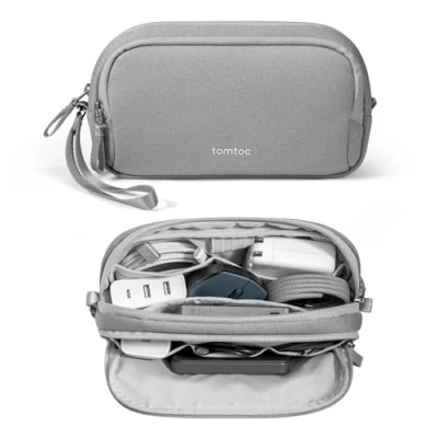 tomtoc Electronic Organizer Travel Case, Water Resistant Dual Compartment Tech Pouch Cable Organization Storage Bag for Charger, Cord, Phone, Hard Drive, Power Bank, Accessories Essentials