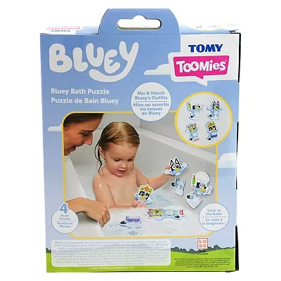 TOMY Toomies Bluey Bath Puzzle 8 Piece Foam Jigsaw Set with Mix & Match Poses, Soft Baby Toys, Non Toxic and Water Friendly, Includes Mesh Storage Bag Suction Cups, 18+ Months