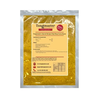 Tongmaster’s own secret recipe curry sauce is blended together with herbs and spices to create a delicious authentic curry sauce. Create your very own fakeaway with this tasty sauce! Add to chicken or beef to create an authentic tasting curry. Use as a dipping sauce or even use for pouring over your favourite meals. An authentic tsating chip shop curry sauce, a british favourite! Empty 110g into a saucepan with 1 pint of cold water. Place on a high heat and stir continuously. Bring to the boil, serve and enjoy.