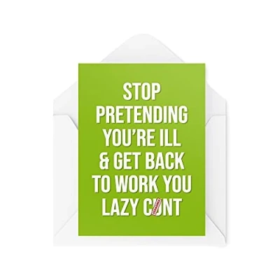 Tongue in Peach,21 x 15 0.2 cm,White,TIP_CARDS_CBH543 Funny Get Well Cards Sympathy Card Stop Pretending You're Ill & Back To Work for Her Him Banter Sweary Colleague CBH543