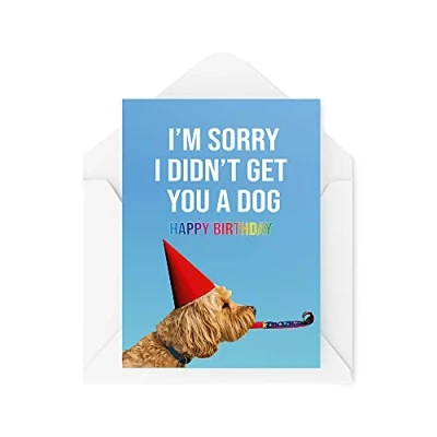 Tongue in Peach Funny Birthday Cards, Card, I'm Sorry I Didn't Get You A Dog, Joke Pet Animal Banter Hilarious for Her Him Gift, CBH469, White, 21 x 15 0.2 cm