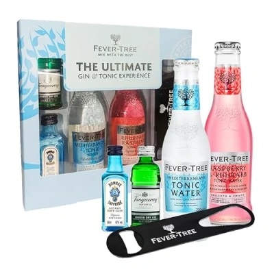 The Fever Tree Tonic & Gin Gift Set is the ultimate present for women who appreciate a premium cocktail experience, especially those who love the classic gin and tonic. This thoughtfully curated set brings a touch of luxury and elegance, featuring a mix of carefully selected gin and tonic pairings that promise a delightful drinking experience. Great for Womens Gifts: share the joy of exceptional flavoured gin and tonic moments with your loved one. This cocktail set is designed for women's and men's who appreciate the finer things in life. Ultimate Gin & Tonic Experience includes: 2 x 5cl gins - Tanqueray dry gin, Bombay Sapphire dry gin and 2 x 200ml Fever Tree Mediterranean, Rhubarb Raspberry tonic waters with branded bar blade. Presented in an elegant box, this Gin lovers gift set is not only a treat for the taste buds but also a delight for the eye. Presented in an elegant box, this Gin gift set is not only a treat for the taste buds but also a delight for the eyes. The cocktail set comes with a beautifully crafted Topline card, making it an ideal Christmas gifts for women, a thoughtful surprise for your Secret Santa gifts for Her, stocking fillers or a special token of appreciation for Mum gifts, also Birthday gifts for women. Flavoured Gin Elegance: indulge your senses with the delightful flavors of these meticulously crafted gins. BOMBAY SAPPHIRE is a premium London dry gin known for its smooth, balanced flavor. Distilled with 10 exotic botanicals, including juniper berries, coriander, and lemon peel, it offers a fresh, crisp taste with floral and citrus notes. Its distinctive blue bottle reflects its refined and modern character. TANQUERAY is a renowned London Dry gin, celebrated for its crisp, juniper-forward flavor and balanced botanical blend. Made with four core botanicals—juniper, angelica root, coriander, and licorice—it delivers a smooth, refreshing taste with a subtle citrus note. Fever-Tree RHUBARB & RASPBERRY Tonic Water is a refreshing blend that combines natural flavors of tart British rhubarb and sweet Scottish raspberries with the brand's signature high-quality quinine. MEDITERRANEAN Tonic Water is a premium mixer known for its refreshing, light flavour. Crafted with natural quinine and carefully selected botanicals from the Mediterranean, including rosemary and lemon thyme, it delivers a subtle and aromatic taste. Make this Christmas festive season memorable with the Gin Gift Set. Order now and treat your loved ones to a delightful blend of sophistication and flavour! Cheers to festive moments and shared joy!