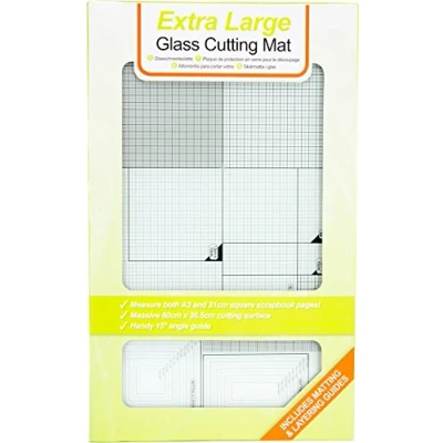 MULTI-PURPOSE CRAFT MAT - This tempered glass mat provides a reliable, smooth surface for all your creative projects, from card making and scrapbooking to mixed media and glue gun applications BUILT-IN GRID FOR ACCURACY - Featuring a fine grid layout, a 15° angle guide, and layering guides for popular card sizes, this mat helps you measure, align, and cut with consistent precision every time HEAT-RESISTANT TEMPERED GLASS - Crafted from toughened tempered glass, the craft mat is heat-resistant and great for use with hot glue guns, heat embossing and other heat-based craft tools EASY-CLEAN WORKSPACE - The smooth glass surface resists stains from ink, paint, and glue, and can be easily wiped clean after use, keeping your crafting space neat and ready for your next project SPECIFICATIONS - The glass A3 cutting mat measures 14.2 x 23.8 inches and has etched measurement lines and helpful guides printed directly on the surface