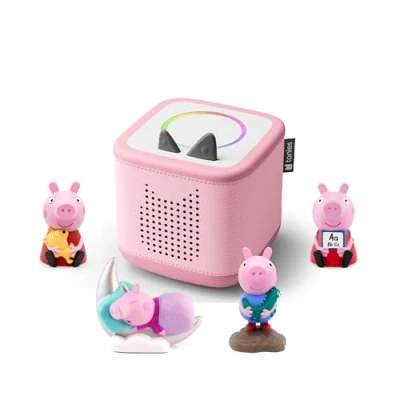 tonies Toniebox 2 Bundle Incl. 4 Tonies: Peppa Pig George Pig, Peppa’s Bedtime Stories, Learn with Peppa, On the Road Cloud Pink